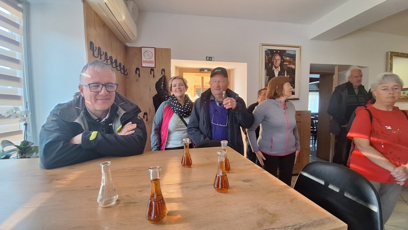 V Muzejski hiši Semič smo ob hitrem pregledu še ostalih zbirk spoznali zgodovino kraja, obisk pa zaključili z degustacijo vin člana Društva vinogradnikov Semič. Pred in po kosilu oz. večerji pa smo si ogledali še učni vrt dr. Derganca, katerega osrednji del predstavlja travniški sadovnjak, ob tem pa so še ekološki vinograd in zeliščni vrt.